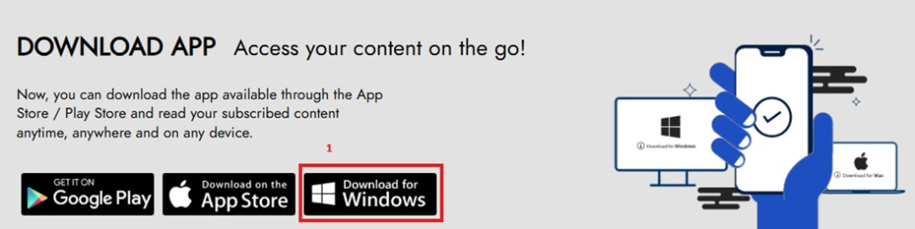 - Install the latest version of the Monk Windows Desktop App (1), and after installation, log in to your personal account and synchronize so that e-books are available for reading offline (2).